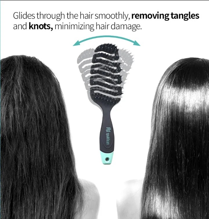 4. 優質猪鬃和尼龍刷毛的混合梳齒有助於去除頭髮上的灰塵和污垢,使頭髮角質層變平,使頭髮有光澤