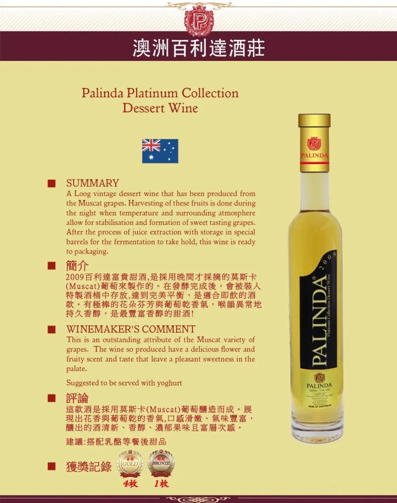 PALINDA Platinum Collection Dessert Wine 2009 375ml