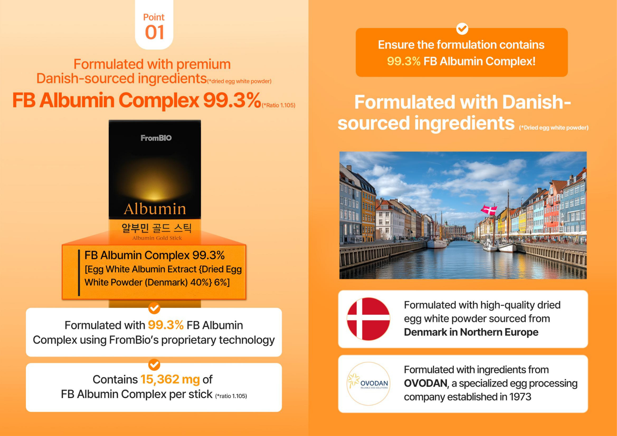 ✅ 高純度配方:含有 99.3% FB白蛋白複合成分,幫助維持身體水分平衡及營養運輸